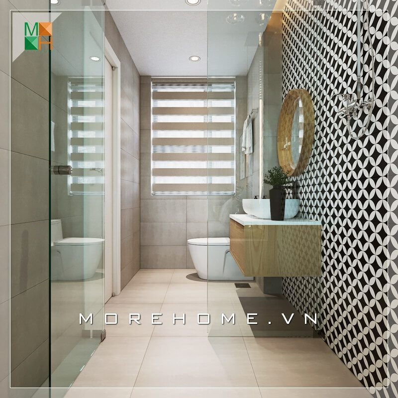 Lựa chọn sử dụng gương treo tường hình vuông kích thước lớn mang đến cho không gian phòng tắm thêm rộng thoáng hơn cả