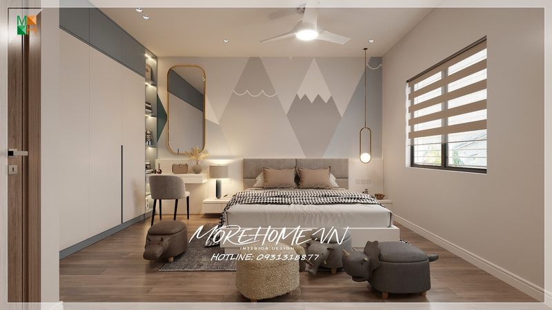 Nội thất phòng ngủ gỗ công nghiệp với vẻ đẹp hài hòa, thanh thoát kết hợp những vật dụng trang trí decor đẹp mắt giúp con cảm thấy yêu thích căn phòng ngủ của mình hơn
