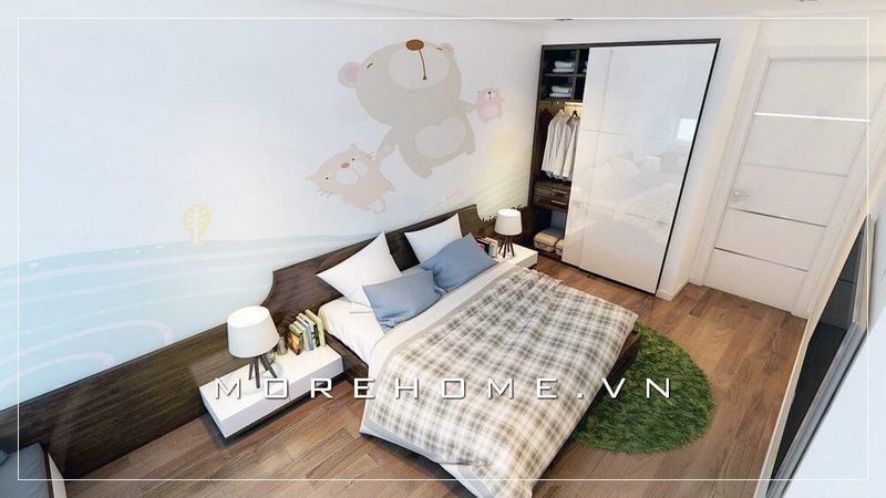 Thiết kế phòng ngủ trẻ em hiện đại, gam màu xanh - trắng chủ đạo luôn tạo cảm giác tươi mới và sinh động hơn