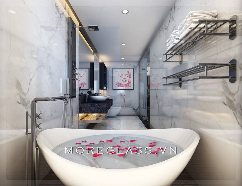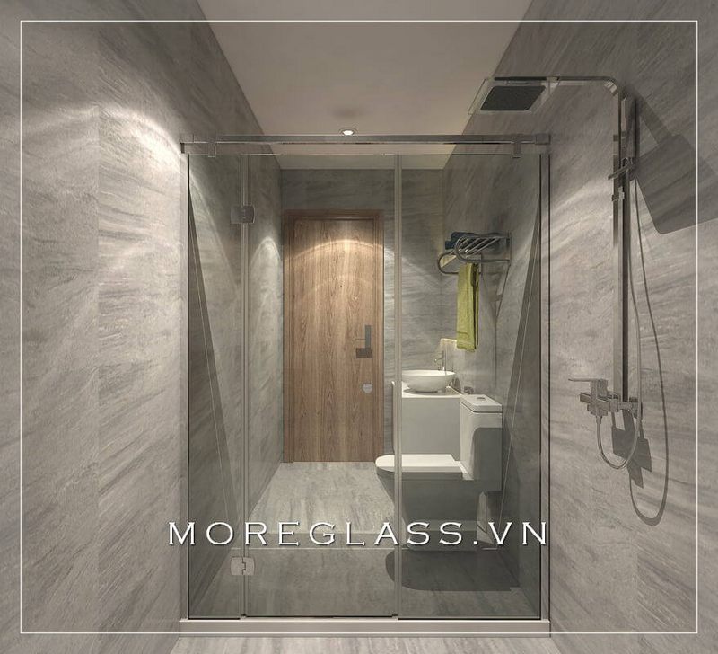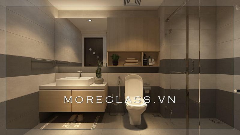 Mẫu thiết kế nhà tắm kính cao cấp với kính cường lực trong suốt mang vẻ đẹp sang trọng, tinh tế mà không gây cảm giác bí bách cho phòng tắm nhỏ